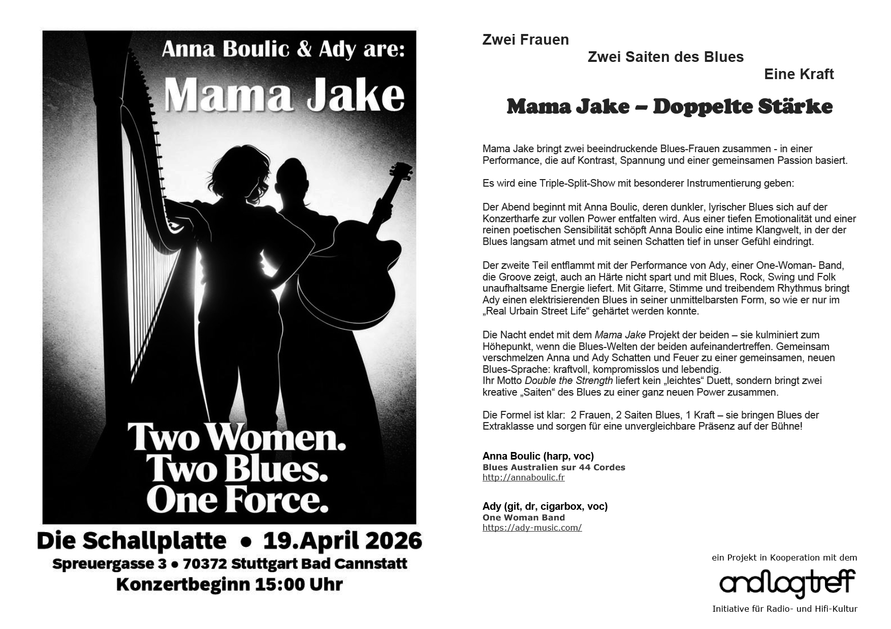 Mama Jake bringt zwei beeindruckende Blues-Frauen in einer Performance zusammen, die auf Kontrast, Spannung und gemeinsamem Feuer basiert.